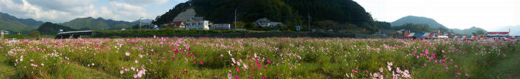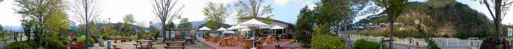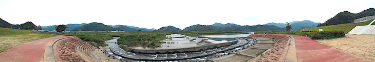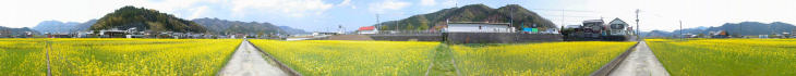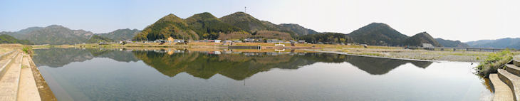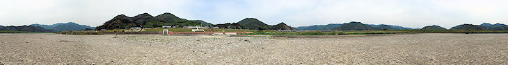 弥生の番匠川と道の駅やよい周辺のパノラマ風景写真