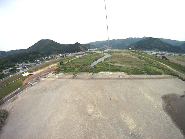 この水の無くなった川の中心から凧を揚げ全体を空撮しました。