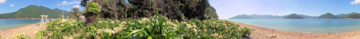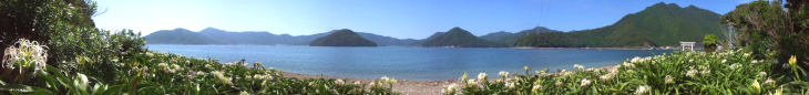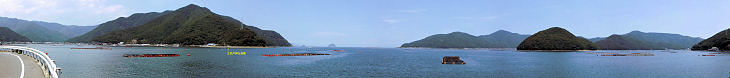 尾浦と畑野浦付近の海の風景をパノラマ写真でお楽しみください。