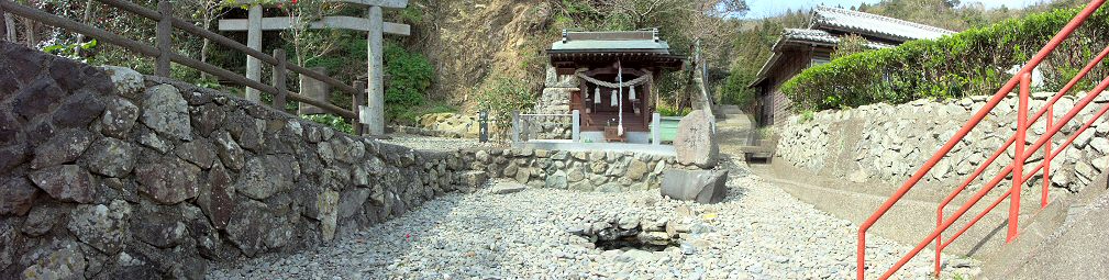 | 日向国、美々津の浜を出航されて、東にむかわれる神武天皇は、九州の東海岸ぞいにみ船をすすめられた。 み船は、うちよせる太平洋のあら波をしのぎ、豊後水道の潮にのって、やがて、佐伯湾にはいられた。ここには、海部とよばれる漁師(海人)たちが、あちらの浦、こちらの浜に、数戸ずつの村をつくつて、海のえものをとってくらしていた。 「おお、島が見える。漁師たちの船もいる。あの島で水をもとめよう。」いく日ものこうかいに、飲み水をつかいはたしたみ船は、佐伯湾の大入島によって船をつなぎ、天皇は、おとものものたちとともに上陸された。 「これ、水がほしい。ちかくに水はないか。」おとものものがたずねると、漁師は、こまったような顔でこたえた。 「はい、あの山の下に、岩をもれる水がわずかばかりございますが、このように大ぜいのかたがたのつかう水は、とてもありません。」 島のようすを見ると、浜べには、水をくむような谷川など見あたらない。漁師たちは、海にせまる山すその、岩間づたいにぽたりぽたりとおちる水をあつめ、またほ、岩のくぼみにたまる雨水をくんでは のみ水にしていた。 漁師たちの、こんなくらしを見てうなずかれた天皇は、山すその、岩根にちかい砂浜にあるいていかれた。そして、手にもたれた折弓のさきを、地中ふかくつき立てられた。 「水よ、でよ。水よ、でよ。」と、おいのりし、しずかに弓をぬきとられた。 すると、うつくしい水が、こんこんとわきあがってきた。 「おお、水だ。きよらかな水だ。」 おとものものたちほ、よろこんでその水をくんだ。 「ああ、なんとゆたかな水か。」「いのちの水だ。」 漁師たちも、ロぐちにさけびながらその水をくんだ。 あくる朝、まだ夜のあけないうち、潮どきをえて船出するみ船を、漁師たちは、心をこめたたき火で見おくり、航海のぶじをいのったという。 大入島のこの浦は、日向泊と名づけられた。弓のさきでほられた井戸は神の井とよばれ、いまもだいじにのこされている。また、日向泊の海岸には、み船をつないだというふたつの大岩ものこっており、海人たちが、み船を見おくるときたいた火明りは、いまも日向泊につたわるドンド(正月十五日、鏡もちを竹のさきにつけ、たき火でやいて食べる行事・左義長)のおこりであるといわれている。 |