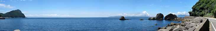佐伯市上浦の海岸部と蒲戸崎からのパノラマ風景写真