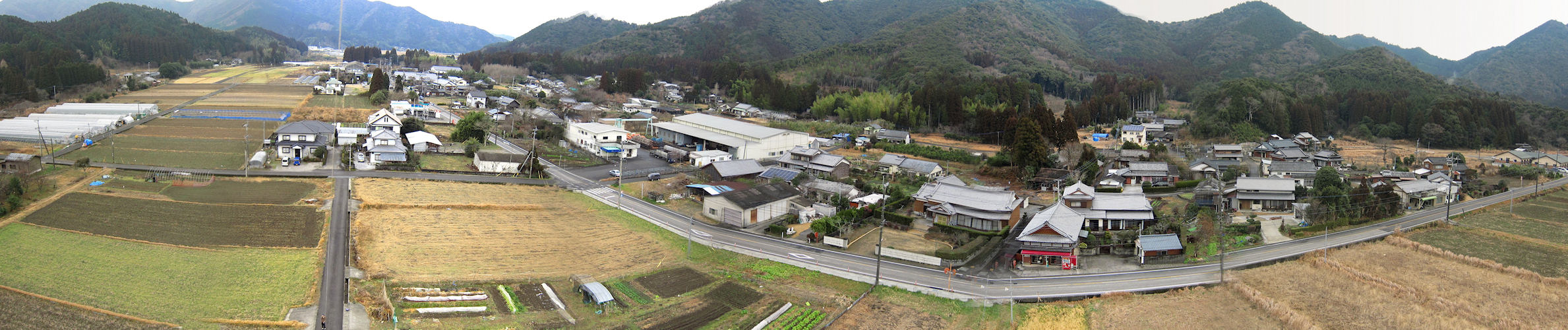 自宅前から凧をあげて大野地区を空撮パノラマ