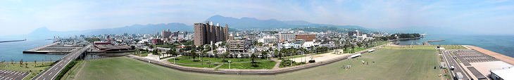2013年5月25日 国際観光港広場から凧を揚げて空撮した別府のパノラマ