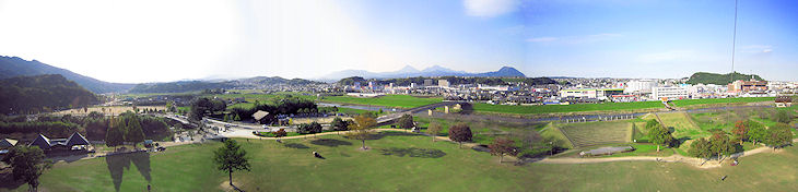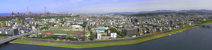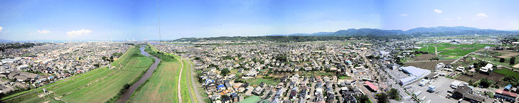 大分川河川敷から凧を揚げて撮影した写真複数枚を合成しパノラマにしました 写真1