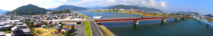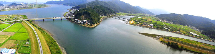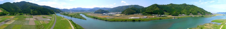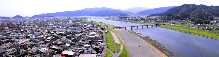 2014年8月 番匠川の南側河川敷を空撮パノラマで