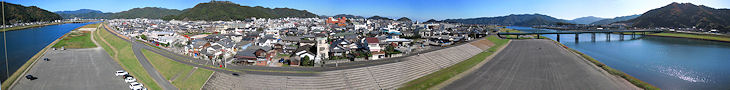 2016年6月13日 門川文化会館隣の公園から凧を揚げて五十鈴川をパノラマで