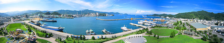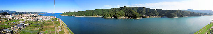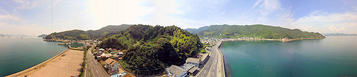 快晴の日 凧を使って佐伯市を空から360度全方向を空撮しパノラマに合成