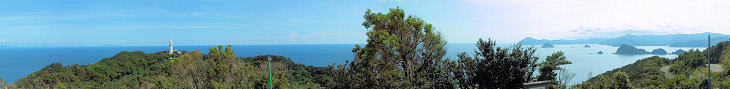 梶寄とつるみ半島先端や鶴御崎灯台のパノラマ風景写真