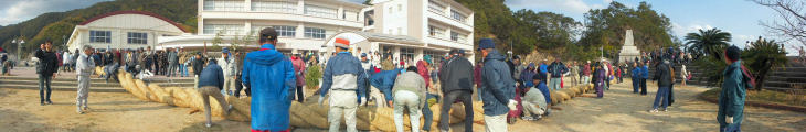 佐伯市上浦の豊後二見ヶ浦のしめ縄は長さ65m、最大直径75cm、重さ2トンと、ギネスブックにも登録された日本一の