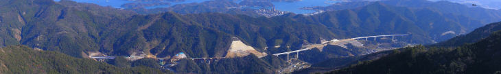 展望台から高速自動車道と海崎を望む