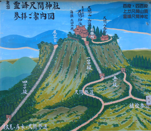 山頂の尺間神社の図