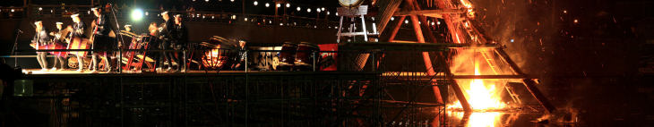 御玉橋から火矢を放ってこの大たいまつに点火します。